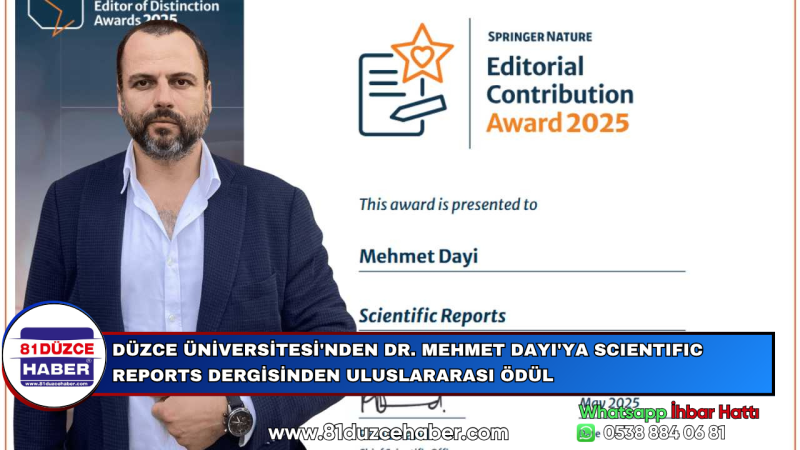 DMHA DÜZCE-Nature Publishing Group tarafından yayımlanan ve uluslararası hakemli bir dergi olan Scientific Reports, her yıl editöryal sürece değerli katkılarda bulunan bilim insanlarını bu ödülle onurlandırıyor. Dr. Dayı, bilimsel yayın sürecine sunduğu yüksek nitelikli değerlendirme hizmetleri ve akademik titizliği sayesinde bu prestijli ödülü almaya hak kazandı.Dergi editörleri, Dr. Dayı’nın hakemlik süreçlerinin bilimsel araştırmaların güvenilirliğine ve kalitesine katkı sağladığını vurguladı.Düzce Üniversitesi yaptığı açıklamada, Dr. Öğr. Üyesi Mehmet Dayı’yı bu uluslararası başarısından dolayı tebrik ederek, akademik kariyerinde başarılarının devamını diledi.