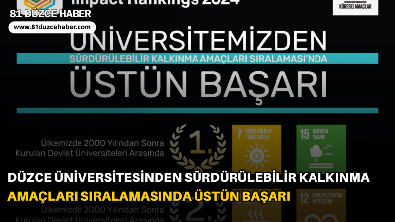 Uluslararası sıralamalar konusunda önemli organizasyonlardan biri olan Times Higher Education (THE) tarafından yayınlanan Impact Rankings 2024 (Etki Sıralamaları) sonuçlarına göre Düzce Üniversitesi, yine üst sıralarda yer alma başarısı gösterdi.