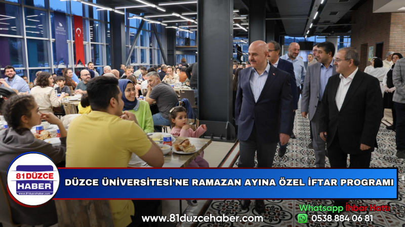 Düzce Üniversitesi, her yıl Ramazan ayında geleneksel olarak düzenlediği iftar programında üniversite mensuplarını bir araya getirdi. Bu yılki iftar programı, Düzce Üniversitesi Rektörlüğü tarafından organize edilerek geniş bir katılım sağlandı.