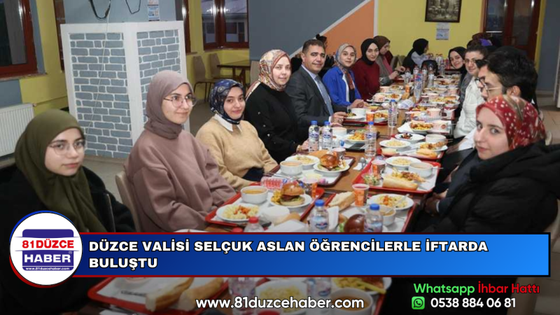 Düzce Valisi Selçuk Aslan KYK Konuralp Kız Öğrenci Yurdu’nda kalan üniversiteli gençlerle iftar programında bir araya geldi.Vali Aslan , Ramazan ayının manevi atmosferinde gençlerle vakit geçirmekten duyduğu memnuniyeti dile getirdi.