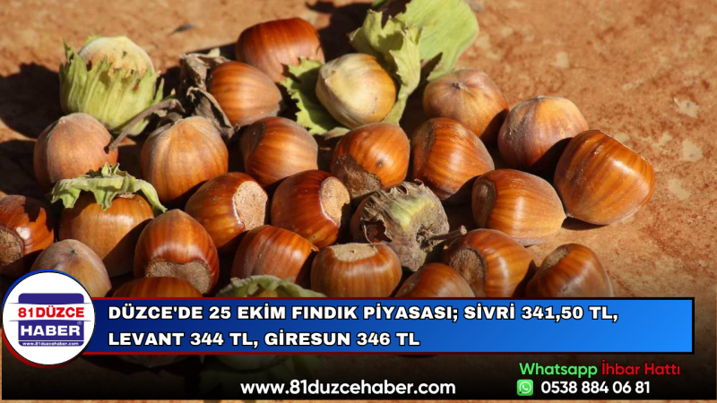 Düzce'de 25 Ekim Fındık Piyasası; Sivri 341,50 TL, Levant 344 TL, Giresun 346 TL