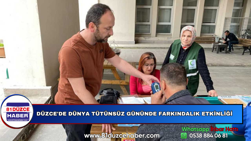 DMHA DÜZCE-Etkinlikte, tütün ve tütün ürünlerinin zararlarına dikkat çekilerek, bağımlılığı önleyici bilgilendirmelerde bulunuldu. Sigara kullanan vatandaşlara ücretsiz karbonmonoksit ölçümü uygulanarak, tütünün solunum üzerindeki etkileri konusunda farkındalık oluşturuldu.
