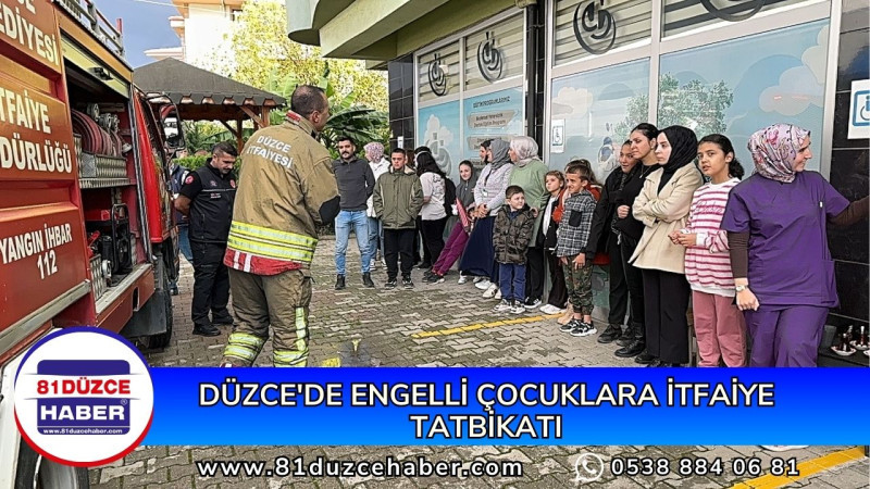 DÜZCE'DE ENGELLİ ÇOCUKLARA İTFAİYE TATBİKATI