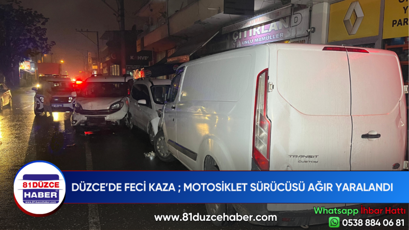 DÜZCE’DE FECİ KAZA ; MOTOSİKLET SÜRÜCÜSÜ AĞIR YARALANDI