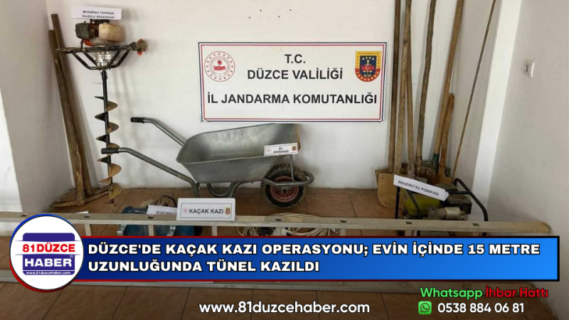 Akçakoca'da kaçak kazı yapıldığı bilgisi üzerine Jandarma Ekipleri operasyon gerçekleştirdi. Yapılan operasyonda evin içinde 15 metre uzunluğunda tünelin kazıldığı tespit edildi.