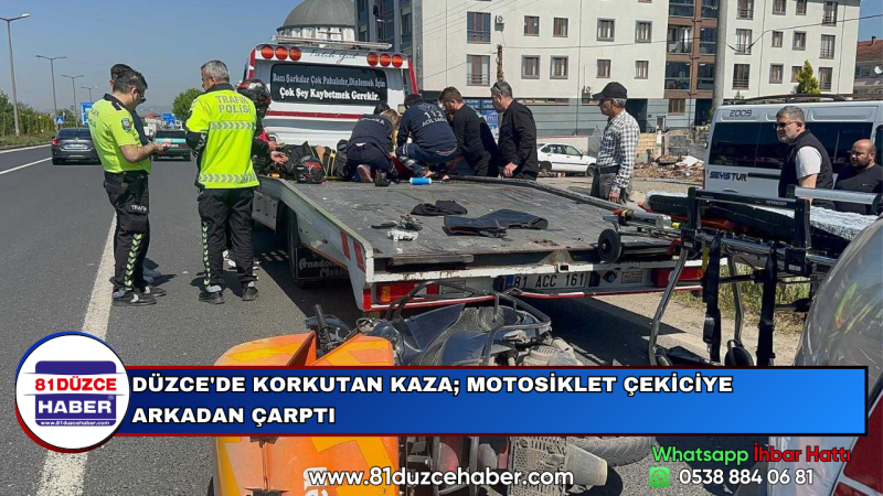 DÜZCE'DE KORKUTAN KAZA; MOTOSİKLET ÇEKİCİYE ARKADAN ÇARPTI