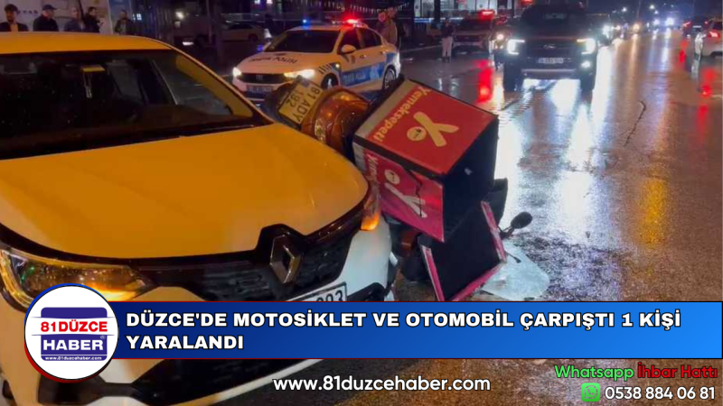 DÜZCE'DE MOTOSİKLET VE OTOMOBİL ÇARPIŞTI 1 KİŞİ YARALANDI