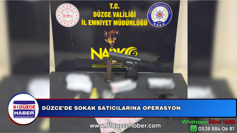 DMHA DÜZCE – Düzce İl Emniyet Müdürlüğü ekipleri tarafından sokak satıcılarına yönelik operasyon düzenlendi. Operasyonlar neticesinde Ü. A., B. A., ve T. Ö. isimli üç şahıs yakalandı. Yapılan aramalar neticesinde uyuşturucu maddeler, 1 adet Ruhsatsız Kuru Sıkı Tabanca, Uyuşturucu Madde Ticaretinden elde edildiği değerlendirilen 4000 TL nakit para ve 1 adet Cep Telefonu ele geçirildi. Yakalanan 3 şahıs çıkarıldığı mahkemece tutuklanarak ceza evine teslim edildi.