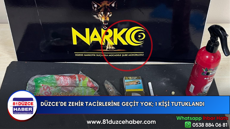 DÜZCE’DE ZEHİR TACİRLERİNE GEÇİT YOK; 1 KİŞİ TUTUKLANDI