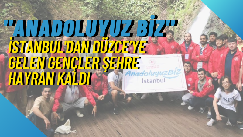 Gençlik ve Spor Bakanlığı’nın geçtiğimiz yıllarda başlattığı "Anadoluyuz Biz" projesi çerçevesinde İstanbul’dan Düzce’ye 48 öğrenci getirildi. Düzce’de 1 hafta boyunca şehri gezen gençler kente adeta hayran kaldı. Samandere, Fakıllı, Güzeldere gibi bilinen noktaların yanı sıra şehitlik ziyaretleri gibi sosyal sorumluluk etkinlikleri gerçekleştiren gençler, final akşamında çiğ köfte partisi ve futbol etkinliği ile Düzce’ye veda etti.