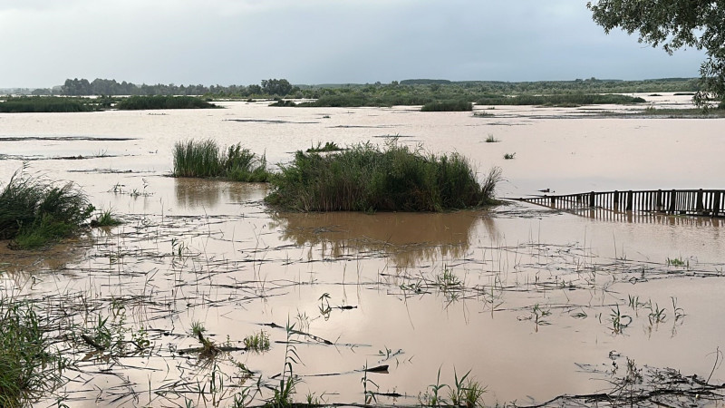 Düzce'de kuşların göç yolu üzerindeki önemli bir sulak alan olan Efteni Gölü, etkili olan sağanak yağış sonrasında taştı. İskele ise çökerek sular altında kaldı.