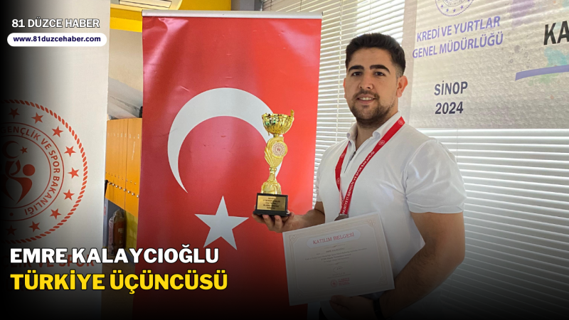 Sinop’ta düzenlenen Kredi ve Yurtlar Genel Müdürlüğü Spor Oyunları Türkiye Pool Bilardo Şampiyonası’nda Düzce'yi temsil eden Emre Kalaycıoğlu üçüncü oldu.