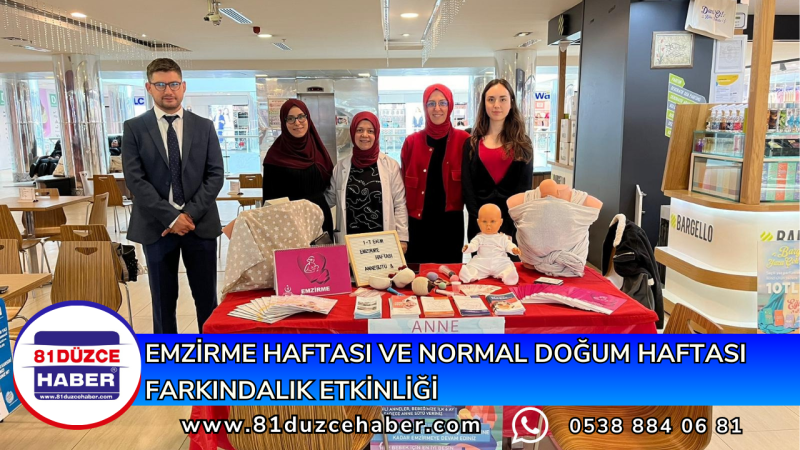 Düzce il Sağlık Müdürlüğü’ne bağlı ekiplerce Düzce Merkez’de bulunan AVM’de 1-7 Ekim Emzirme Haftası ve Normal Doğum Haftası etkinlikleri kapsamında farkındalık standı açıldı