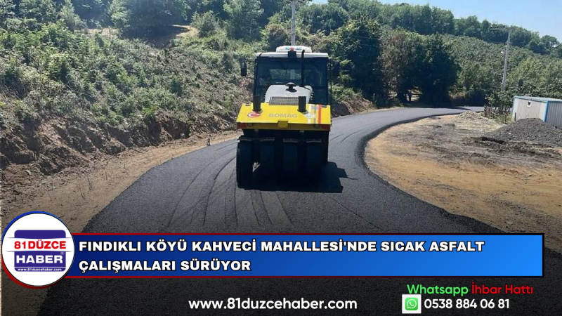 Düzce İl Özel İdaresi Yol ve Ulaşım Hizmetleri Müdürlüğü ekipleri, merkez ilçeye bağlı Fındıklı Köyü Kahveci Mahallesi’nde sıcak asfalt serim çalışmalarına aralıksız devam ediyor.