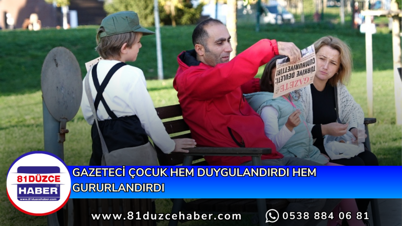 Cumhuriyet'in ilanının sembolleri arasında bulunan "Gazeteci Çocuk" dönemin kıyafetlerini giyerek Düzce sokaklarını arşınladı. "Yazıyor, Cumhuriyetin İlanını Yazıyor" seslerinin yankılandığı Düzce sokakları, görüntülere sahne oldu.