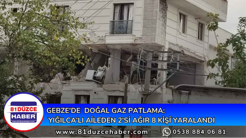 Kocaeli’nin Gebze ilçesinde meydana gelen doğal gaz patlamasında 2'si ağır olmak üzere 8 kişi yaralandı. Patlama meydana gelen dairenin Düzce, Yığılca nüfusuna kayıtlı sarı ailesi olduğu belirlendi
