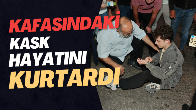 Motosiklet ile otomobilin karıştığı kazada motosiklet sürücüsünü başında takılı olan kask kurtardı. Kazada hafif şekilde yaralanan motosiklet sürücüsü hastaneye kaldırıldı.