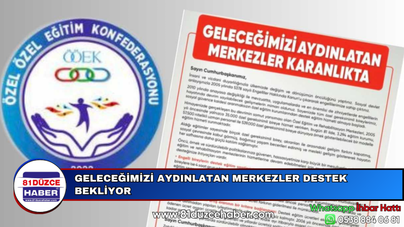 Özel eğitim ve rehabilitasyon merkezleri,engelli bireylerin eğitim haklarının genişletilmesi ve kurumların sürdürülebilirliğinin sağlanması amacıyla Cumhurbaşkanı Recep Tayyip Erdoğan'a hitaben bir çağrıda bulundu.