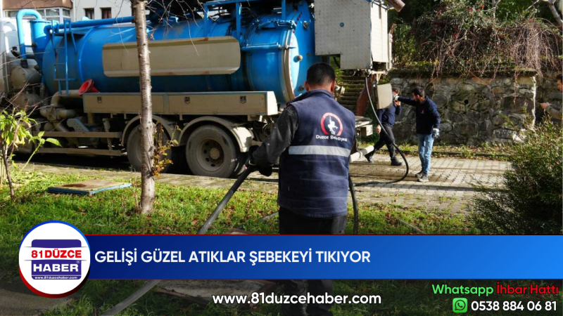 Kanalizasyon hattına atılan ıslak mendil, tuvalet kağıdı, cam ve metal parçalar, inşaat atıkları, poşetler, saçlar ve toprak gibi malzemeler, tıkanıklığa sebep olarak olumsuz sonuçlar doğuruyor. Suda erimeyen ve suyun akışını engelleyen bu maddeler, atıksu borularına ve arıtma sistemine de büyük zararlar veriyor. Düzce Belediyesi Su ve Kanalizasyon Müdürlüğü ekipleri ise sorunlara kısa sürede müdahale ederek, kanalizasyon şebekesinin düzgün işlemesini sağlıyor.