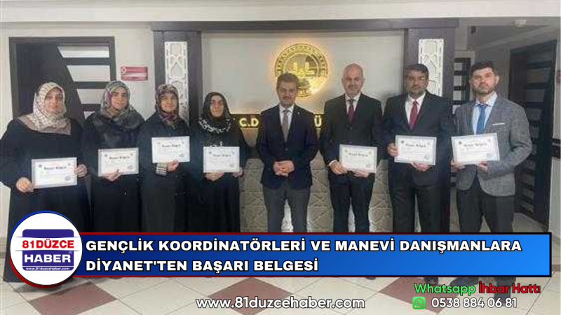 Diyanet İşleri Başkanlığı tarafından, Düzce İl Müftülüğü bünyesinde Gençlik Koordinatörü ve Manevi Danışman olarak 5 yıl ve üzeri süreyle görev yapan personele, görev alanlarıyla ilgili göstermiş oldukları özverili çalışmalar ve gayretler dolayısıyla “Baş