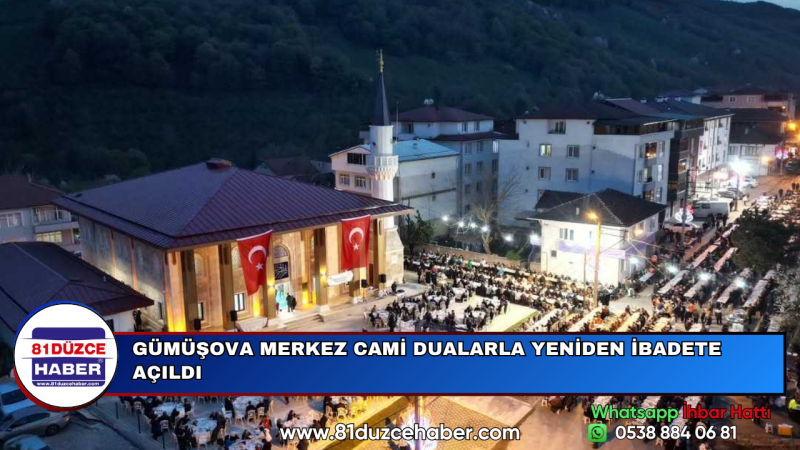 DMHA DÜZCE-Açılış törenine Düzce Valisi Selçuk Aslan, Kaymakam Selçuk Yosunkaya, Belediye Başkanı Kenan Sübekci, protokol üyeleri ve çok sayıda vatandaş katıldı.Camii, sadece bir ibadethane değil, aynı zamanda kültür, eğitim ve sosyal hayatın kalbi olacak bir buluşma noktası olarak inşa edildi. Bu özel yapımda emeği geçenlere, özellikle Merkez Cami Dernek Başkanı Arif Usta, mimarlar, mühendisler, ustalar ve hayırseverlere teşekkür edildi.Açılışta yapılan dualarla cami, yeniden ibadete açıldı. Katılımcılar, Kadir Gecesi'nde caminin açılmasının manevi bir anlam taşıdığını belirterek, emeği geçen herkese minnettarlıklarını dile getirdiler.