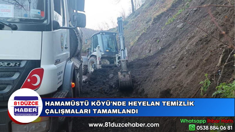 Düzce İl Özel İdaresi Gölyaka İlçe Özel İdare Müdürlüğü ekipleri, Hamamüstü Köyü Dere Mahallesi'nde meydana gelen heyelan sonrası başlattığı temizlik çalışmalarını tamamladı.