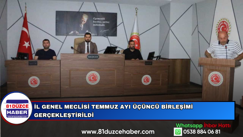 Düzce İl Genel Meclisi’nin Temmuz ayı toplantılarının üçüncü birleşimi, Meclis Başkanı Fazlı Koç başkanlığında İl Genel Meclis Toplantı Salonu’nda yapıldı.