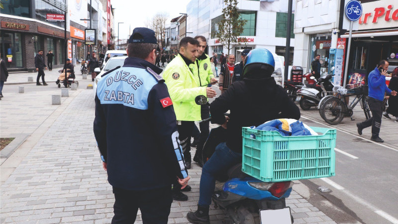 Düzce Belediyesi Zabıta Müdürlüğü ekipleri, motorlu taşıtların girişinin yasak olduğu İstanbul Caddesi üzerinde denetim yaptı.