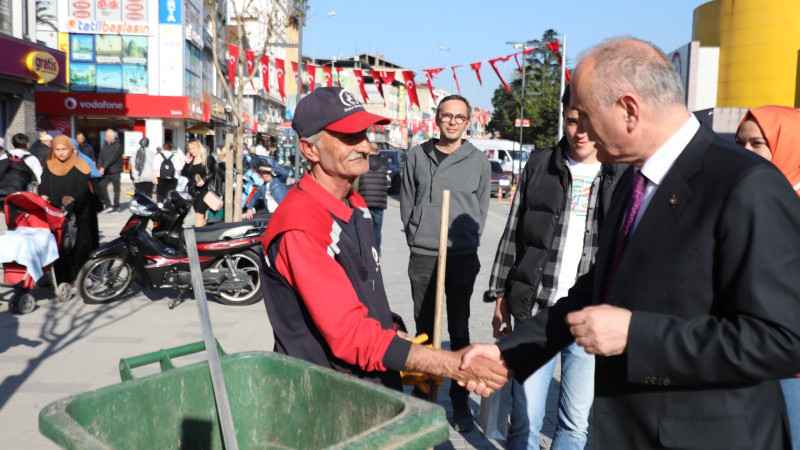 Düzce Belediye Başkanı Dr. Faruk Özlü, güzel havayı fırsat bilerek sokağa çıktı. Belediye önünden başlayarak vatandaşlar ve esnaf ile hasbihal eden Başkan Özlü, herkesin elini tek tek sıkarak “Belediyemizden bizden bir isteğiniz var mı?” sorusunu yöneltti.