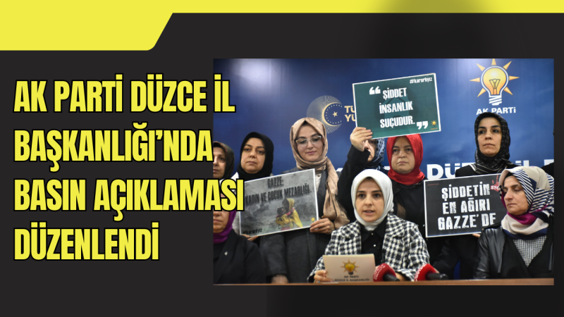 AK Parti Genel Merkez Kadın Kolları Başkanlığı tarafından 25 Kasım Kadına Şiddete Karşı Uluslararası Mücadele Günü dolayısıyla 81 ilde eş zamanlı organize edilen basın açıklaması Düzce İl Başkanlığı’nda İl Kadın Kolları Başkanı Av. Şulenur Kubilay Yılmaz tarafından gerçekleştirildi. “Kadına Yönelik Şiddete Karşı Uluslararası Mücadele Günü’nde, bu konudaki kararlılığımızı vurgulamak için buradayız diyen Yılmaz, “ateşkesin kalıcı olmasını diliyoruz” dedi. Kadın ve çocuk mezarlığına dönen Gazze’deki acıların gölgesinde açıklama yaptıklarını belirten Yılmaz, “dün Bosna’da bugün Gazze’de olduğu gibi çatışma bölgelerinde kadınlara uygulanan insanlık dışı fiziksel ve cinsel saldırılar ve toplu şiddetin, aynı zamanda savaş suçu” olduğunu ifade etti. Yılmaz, “bütün dünyanın gözleri önünde her saat 6 çocuk, 4 kadın öldürüldü. Burada ölen sadece masum kadın ve çocuklar değil vicdanlarımızdır” dedi.