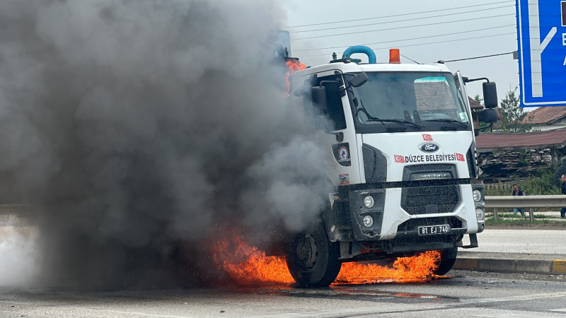 Olay, D-655 Zonguldak - Düzce kara yolunda meydana geldi. Edinilen bilgiye göre, 81 EJ 740 plakalı Ford marka kamyon, Beçi ışıklar mevkiinde bilinmeyen bir sebeple alev aldı. Yangını fark eden sürücü ve yolcu panikle kamyondan indi. 112 Acil Çağrı Merkezi'ne yapılan ihbar üzerine olay yerine Düzce Belediyesi itfaiye ekipleri sevk edildi. Kısa sürede olay yerine gelen itfaiye ekipleri, yangını söndürebilmek için çalışma başlattı. Yangın, ekiplerin çalışmalarının ardından güçlükle kontrol altına alındı. Yangın sebebiyle her iki şeritte de yol kısmen trafiğe kapatılırken, aracın kaldırılmasının ardından trafik normal seyrine döndü.
