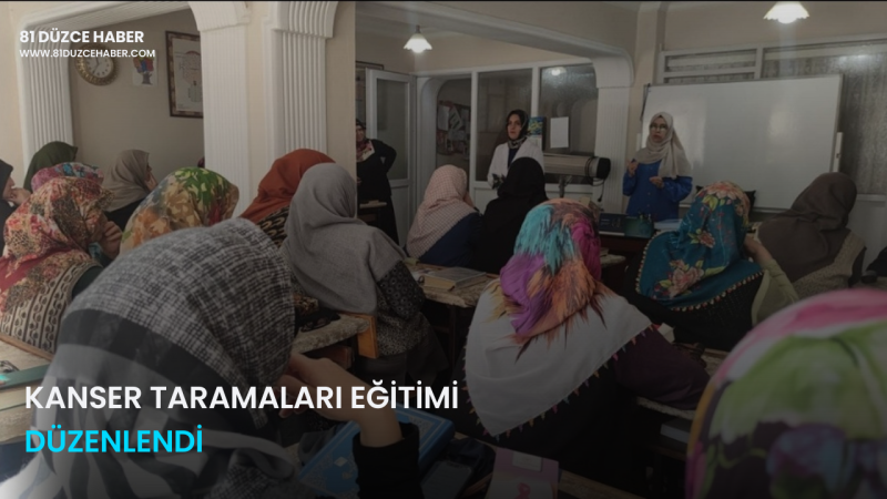 Düzce İl Sağlık Müdürlüğü ekiplerince Fatih Camii Kur'an Kursuna mukabeleye gelen hanımlara yönelik kanser taramaları eğitimi düzenlendi.