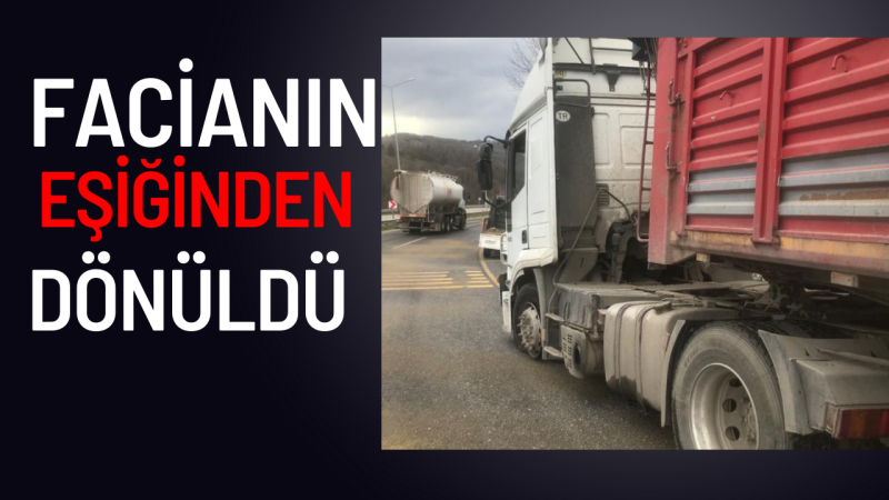 Lastiği patlayan tır karşı şeride geçerek durabildi. Felaketin ucuz atlatıldığı kazada tır sürücüsü hafif şekilde yaralandı.