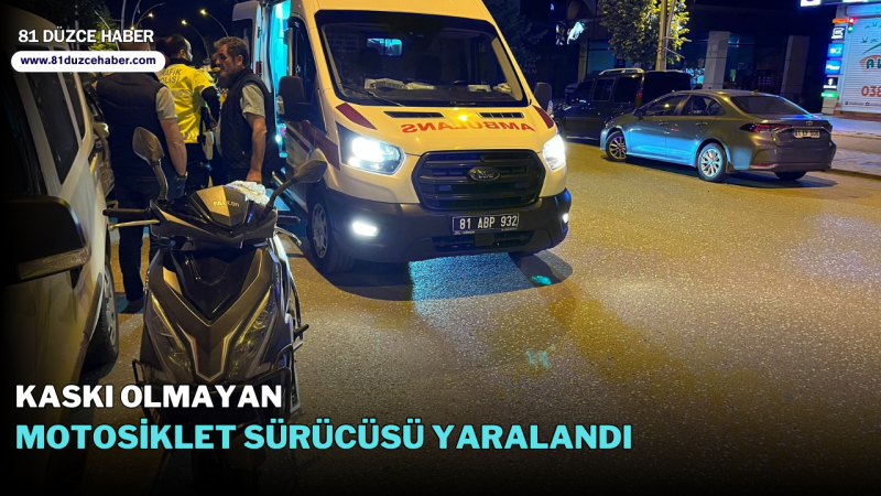 DMHA DÜZCE - Kültür Mahallesi Rasim Bedirpaşa Bulvarı üzerinde, sanayi istikametinden çoban yönüne ilerlemekte olan 81 ADN 460 plakalı motorsiklesürücüsü A.D direksiyon hakimiyetini kaybetmesi sonucunda kaza yaptı. Yerde sürüklenmeye başlayanve kaskı olmayan motorsiklet sürücüsü A.D başına darbe alarak yaralandı. Kazayı gören çevredeki vatandaşların ihbarı üzerine olay yerine polis vesağlık ekipleri sevk edildi. İlk müdahalaesi olay yerinde yapılan motosiklet sürücüsü Düzce Atatürk Devlet Hastanesi'ne kaldırıldı.