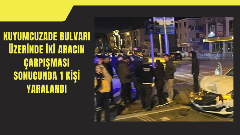 Kuyumcuzade Bulvarı üzerinde iki aracın çarpışması sonucunda 1 kişi yaralandı. Yaralanan kişi ilk müdahalenin ardından hastaneye kaldırıldı.