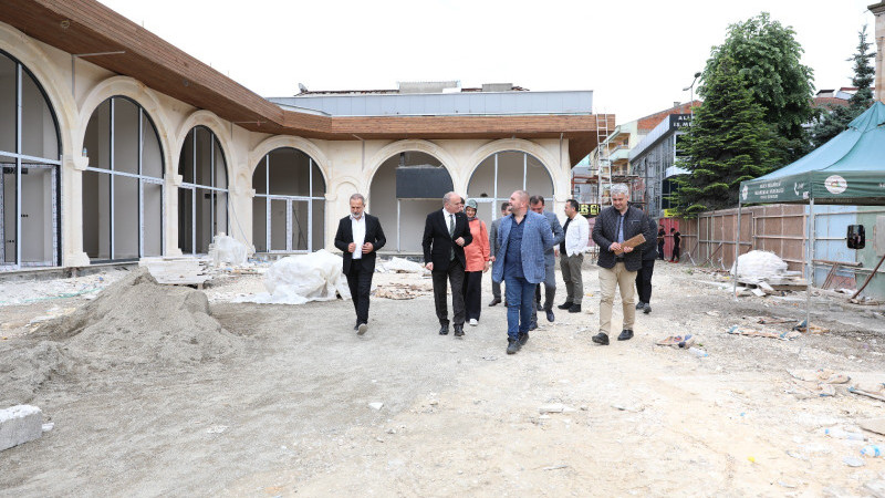Cedidiye Cami ile uyumlu ve bütünlük oluşturacak şekilde yapımı devam eden çalışmalar hakkında proje yetkililerinden bilgi alan Başkan Faruk Özlü, dükkanların iç kısımlarını da gezerek, projenin kalan kısımlarının da kısa sürede tamamlanarak vatandaşların hizmetine sunulması için talimat verdi.