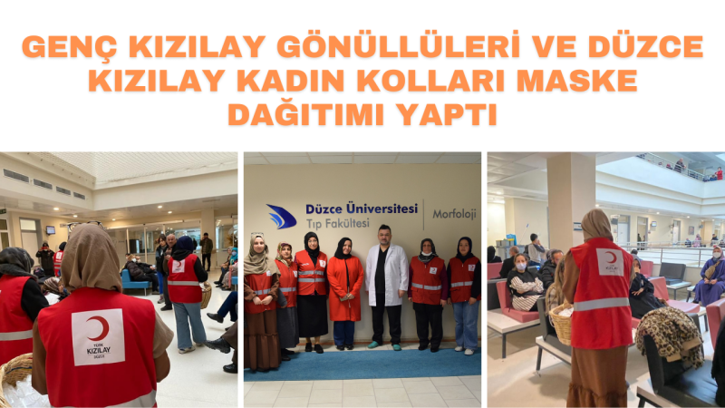 Hijyen Haftası dolayısıyla Genç Kızılay Gönüllüleri ve Düzce Kızılay Kadın Kolları, Düzce Üniversitesi Tıp Fakültesi Hastanesi’nde maske dağıtımı yaptı.