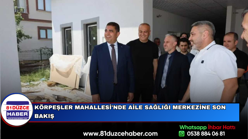 DMHA DÜZCE-İl Sağlık Müdürü Dr. Yasin Yılmaz ile birlikte alanda bulunan yetkililerden bilgi alındı.Sağlık merkezinin yapımına katkı sağlayan Hayırsever Ahsen Çalışkan ve Sebahattin Uzun’a teşekkür edilerek, bölge halkına sunulacak sağlık hizmetlerinin kalitesinin artırılacağı vurgulandı. Yeni merkezin Körpeşler Mahallesi’nde sağlık hizmetlerine büyük kolaylık sağlaması bekleniyor.