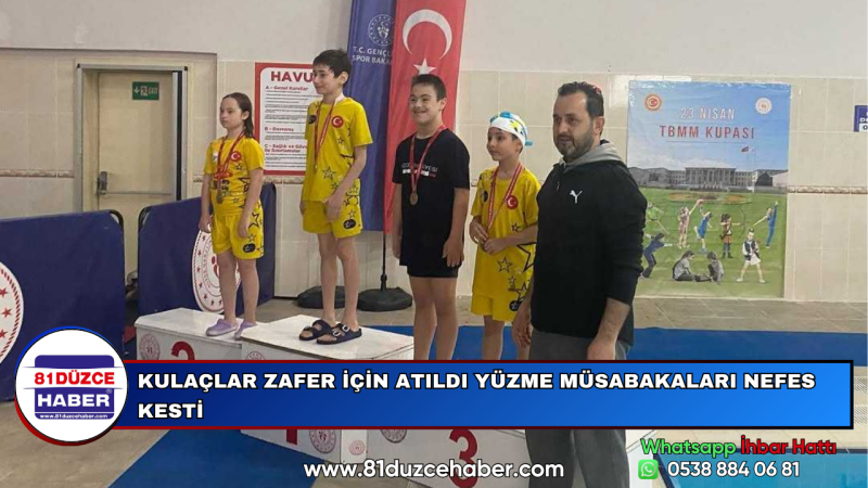 DMHA DÜZCE-12-13 Nisan 2025 tarihlerinde Düzce Yüzme Havuzu'nda yapılan yarışlarda tam 215 sporcu havuzda kıyasıya mücadele etti.Bayram havasında geçen organizasyonda, minik yüzücüler yeteneklerini sergilerken izleyenlere de unutulmaz anlar yaşattı. Heyecan dolu anlara sahne olan müsabakalarda, her kulaç adeta bir zafer için atıldı.Yarışlar sonunda dereceye giren sporculara madalyaları ve katılım belgeleri takdim edildi. Etkinlik, hem sporun hem de milli bayram coşkusunun en güzel örneklerinden biri olarak hafızalara kazındı.