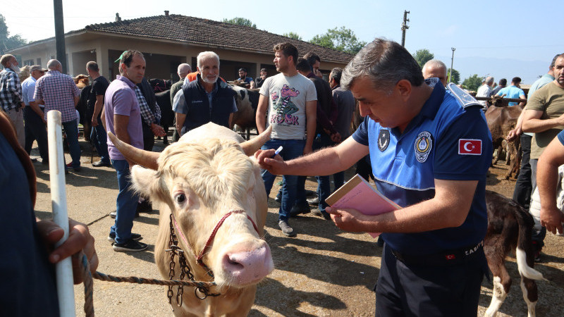 satılan büyükbaş ve küçükbaş hayvanların küpe kontrollerini yaptı.