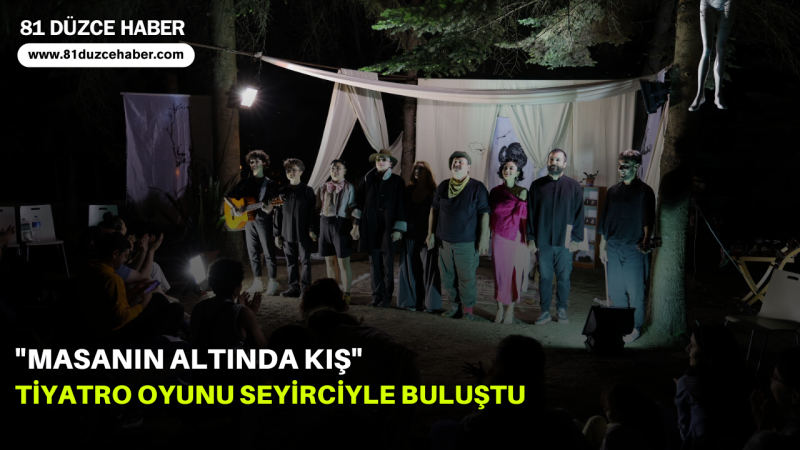 Düzce Üniversitesi Sanat Tasarım ve Mimarlık Fakültesi Sahne Sanatları Bölümü tarafından düzenlenen “Masanın Altında Kış” adlı tiyatro gösterimi Sanat Tasarım ve Mimarlık Fakültesi Çamlık’ta sahnelendi.
