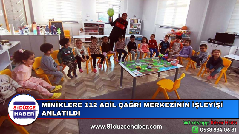 Düzce 112 Acil Çağrı Merkezi Müdürlüğü’nde görevli personel Nursel Atasoy tarafından anasınıfı öğrencilerine meslek tanıtımı yapılarak farkındalık etkinliği düzenlendi.