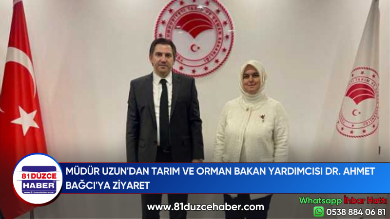 Düzce Tarım ve Orman İl Müdürü Esra Uzun Tarım ve Orman Bakan Yardımcısı Dr. Ahmet Bağcı’yı makamında ziyaret etti.