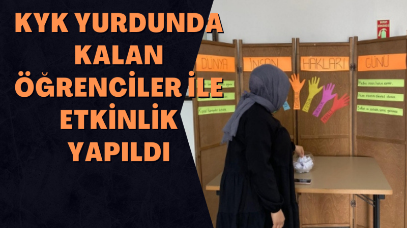Dünya İnsan Hakları Günü nedeni ile KYK yurdunda kalan öğrenciler ile etkinlik yapıldı. Güne özel hazırlanan pano ile farkındalık etkinliği düzenlendi.