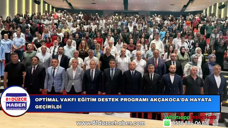 Akçakoca Orhan Özdemir Fen Lisesi’nde düzenlenen “Optimal Vakfı Eğitim Başarı Ödülleri” programı, Düzce Valisi Selçuk Aslan, MÜSİAD Genel Başkanı Burhan Özdemir, Kaymakam Deniz Pişkin, Belediye Başkanı ve protokol üyelerinin katılımıyla gerçekleşti.