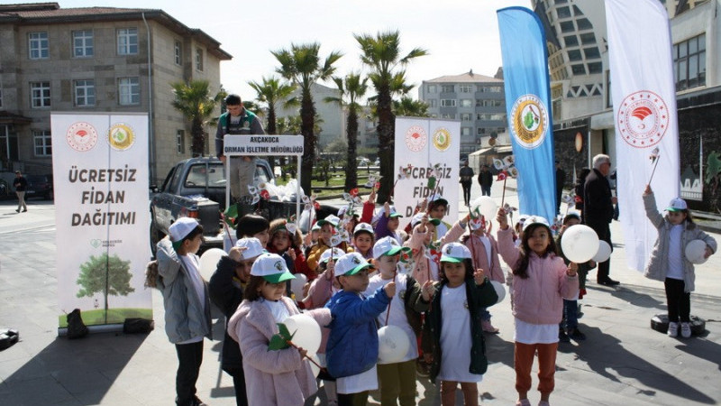 Akçakoca’da orman dostu minik öğrencilere Orman Haftasında sincap çocuk tişörtleri, şapkaları ve rüzgar gülleri hediye edildi.