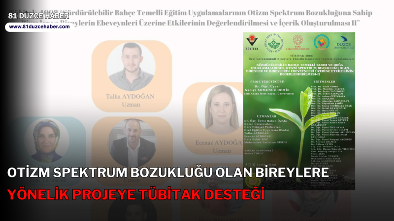 DMHA -DÜZCE- TÜBİTAK tarafından Türkiye genelinde 77 ilden toplam 618 proje başvurusu arasından sadece 68 proje desteklenmeye değer bulundu. İlki geçen yıl düzenlenen ve paydaşları arasında Bolu Abant İzzet Baysal Üniversitesi Eğitim Fakültesi Fen Bilgisi Eğitimi Anabilim Dalı’ndan Dr. Öğr. Üyesi Naciye Somuncu Demir’in yürütücülüğünde, Düzce Üniversitesi Engelsiz Üniversite Koordinatörü ve Eğitim Fakültesi Özel Eğitim Bölümü’nden Dr. Öğr. Üyesi Hakan Özak, Düzce Hacı Hidayet Türkseven Özel Eğitim Uygulama Okulu Müdürü Talha Aydoğan ve aynı kurum öğretmenlerinden Ecenaz Aydoğan, Hacı Bekir Boz ve Muhammed Fatihcan Sürer’in uzman olarak yer aldığı proje, uygulamaya hak kazandı.Proje kapsamında; Düzce Hacı Hidayet Türkseven Özel Eğitim Uygulama Okulu’nda Düzce Üniversitesi’nden birçok öğretim üyesinin de yer aldığı 45 eğitmen ve 15 rehberle birlikte, otizm spektrum bozukluğu olan çocuklar ve ebeveynlerine yönelik disiplinler arası farklı uygulamalar gerçekleştirilecek.