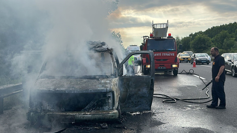 TEM Otoyolu Düzce geçişinde minibüs alev topuna döndü. Yarım saatlik çalışma ile araçtaki yangın söndürülürken, olayda 1 kişi yaralandı.