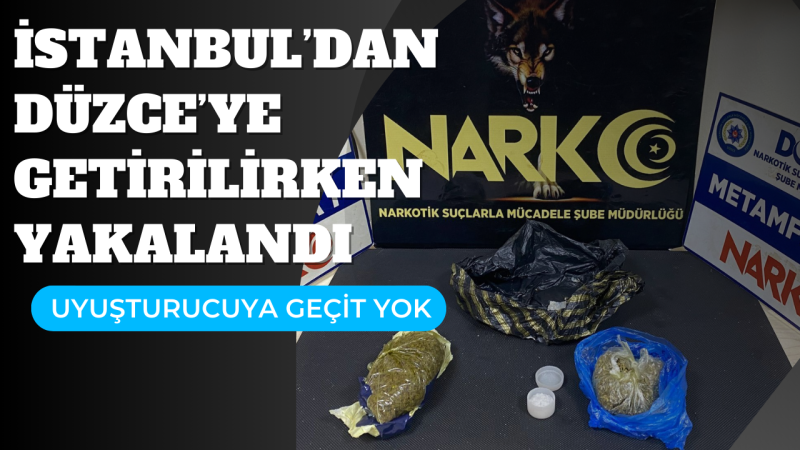 Çevre illerden Düzce'ye uyuşturucu madde taşıyabileceği değerlendirilen araçlar üzerinde otoyol üzerinde yapılan çalışmalarda İstanbul ilinden gelen araç içinde yapılan aramada;Düzce nüfusuna kayıtlı İ.Y isimli şahsa ait; 2 parça halinde 148 gr. Sentetik Kannobinoid 1 parça halinde 7 gr. Metamfetamin maddesi ele geçirildi. Ayrıca şahsın ikametinde yapılan aramada ikamette bulunan G.Y isimli şahsın aranması olduğu anlaşıldı. İ.Y isimli şahıs çıkarıldığı mahkemece tutuklandı