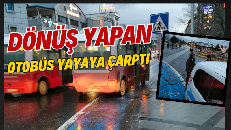 DMHA DÜZCE - Kaza saat 18.30 sıralarında Camikebir Mahallesi Valilik Kavşağı’nda meydana geldi. Edinilen bilgiye göre şehir içi yolcu taşımacılığı yapmakta olan Düzce Ulaşım A.Ş.’ye ait C.E. idaresindeki Özel Halk Otobüsü kavşak içinde dönüş yaptığı sırada sol arka kısmı yaya R.Ö. ‘ye çarptı. Çarpışmanın etkisiyle yaralanan R.Ö.’yü gören çevredeki vatandaşlar durumu 112 Acil Çağrı Merkezi’ne bildirdi. İhbar üzerine sağlık ve polis ekipleri sevk edildi. Yaralanan yaya R.Ö.’ye yapılan ilk müdahale sonucunda Düzce Atatürk Devlet Hastanesi’ne sevk edildi. Polis ekipleri kaza ile ilgili soruşturma başlattı.